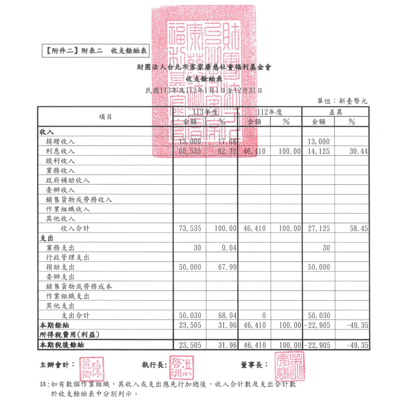 113年度財務報表-收支餘絀表