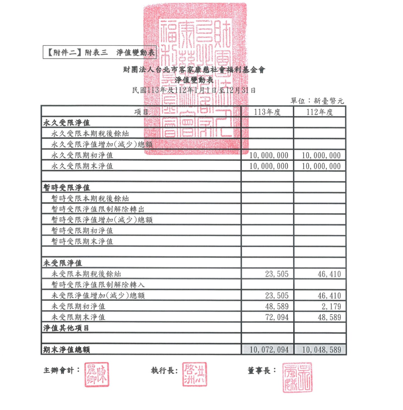 113年度財務報表-淨值變動表